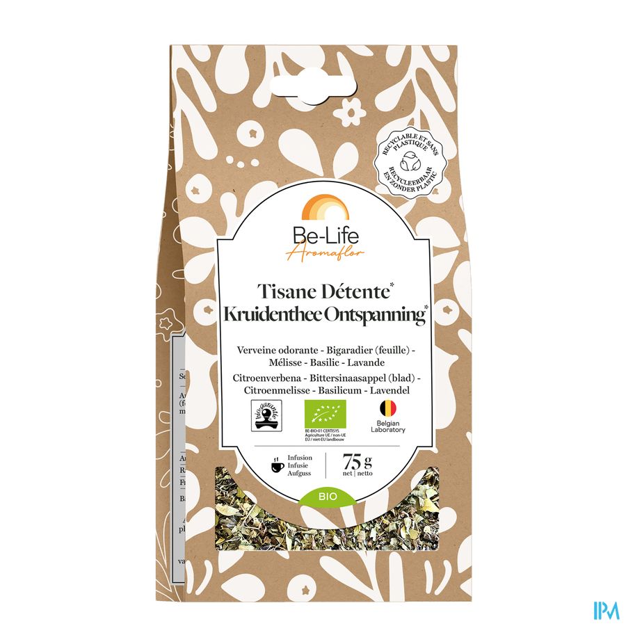 Aromaflor Detente Tisane Sante Bio Be Life 75g est un complément alimentaire disponible en pharmacie. Il ne peut se substituer à un mode de vie sain et à une alimentation variée et équilibrée. Ne prenez pas plus que la dose quotidienne recommandée indiquée sur l'emballage. Demandez conseil à votre pharmacien. Tenir hors de portée des enfants.